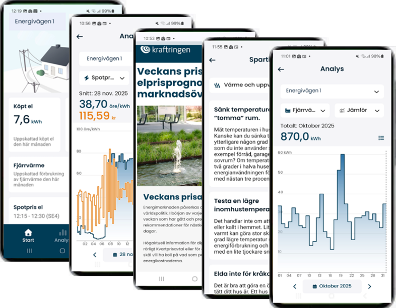 Med vår app ”Kraftringen Energi AB” får du kontroll över din energianvändning på ett enkelt sätt. Här får du en tydlig överblick över just din förbrukning och dina kostnader. Loggar in gör du smidigt med ditt BankID.